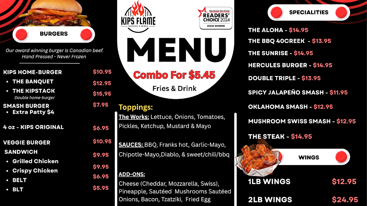 Kips Flame Homemade Burgers & Wings Menu (Update 2025)